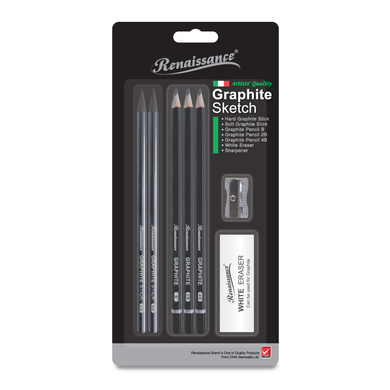 Hyvä perussetti vasta-alkajalle tai vaativammallekin harrastajalle. Paketti sisältää viisi erilaista lyijykynää, laadukkaan kumin ja teroittimen.