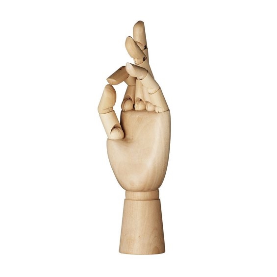 Mallikäsi, puuta. Taivuteltavat nivelet. Korkeus 25 cm.