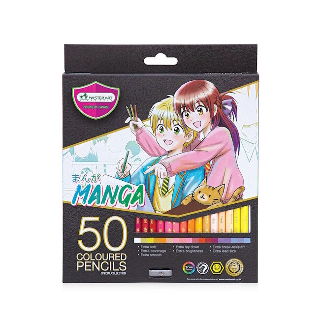 Pakkaus sisältää 50 kpl manga-sävyistä värikynää. Korkealaatuiset puuvärikynät, joissa on täyteläinen ja pehmeä pigmentti sekä hyvä valonkesto. Kirkkaat värit, jotka näkyvät myös tummalla kartongilla.