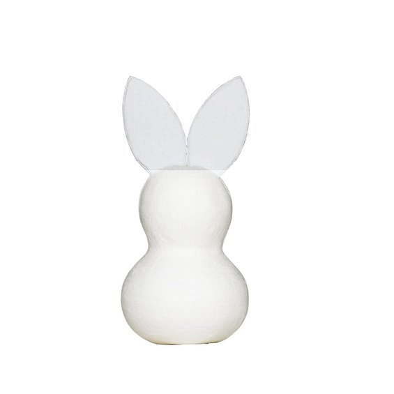 Vartalo + korvat, valmistettu puristevanusta. Korkeus 5 cm Ø 35 mm.