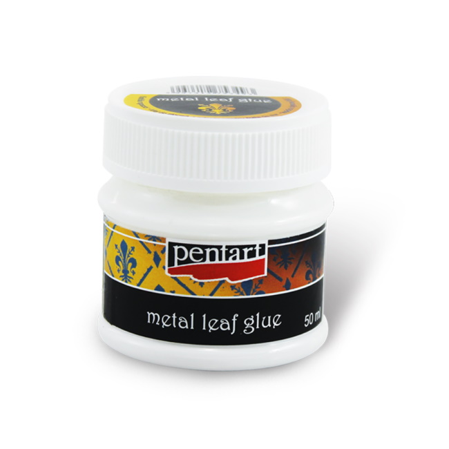 Vesipohjainen, hitaasti kuivuva liima metallilehtien ja -hiutaleiden kiinnittämiseen. Levitä ohut kerros liimaa ja anna kuivua, kunnes liima on muuttunut täysin läpinäkyväksi (noin 15min). Tasoita metallilehdet tai -hiutaleet varovasti liiman päälle. Suojaa työ liuotinpohjaisella lakalla tai Pouring Glaze-lakalla.