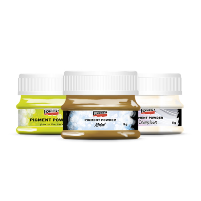 Erittäin hienojakoinen pigmenttijauhe, joka sisältää aitoa metallia. Sekoita pigmenttijauhe sekoitettuun hartsiin tai käytä sitä mixedmedia-materiaaliin tai scrapbooking-projekteihin antaaksesi niille metallisen vaikutelman. Voidaan sekoittaa myös liuotinpohjaisiin lakkoihin.
