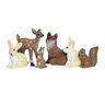 Minieläinsetti, polyresiini-miniatyyri, yksityiskohtainen, elävä ja erittäin söpö. Miniatyyrieläimet pienten tonttuasetelmien koristeluun, tonttuoviin, pienoismaisemiin jne. Sarja metsäeläimillä, 6 kpl. 2 kania, 1 peura, 1 kettu, 1 orava ja 1 pieni kani. Peura on 5 cm korkea.