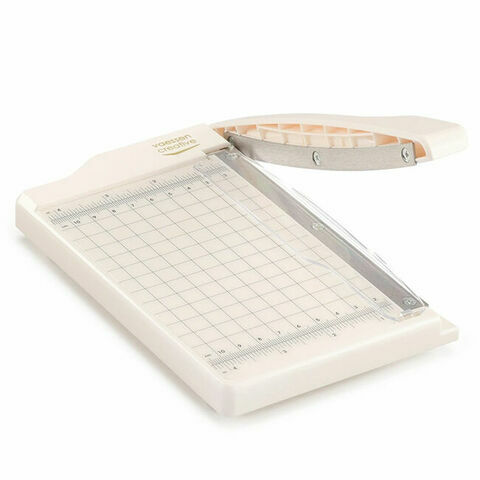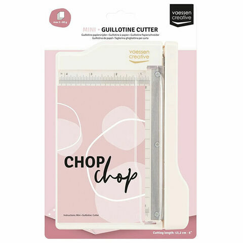 Mini Giljotiini -leikkuri on tarkoitettu erityisesti korttien tekoon ja muihin pieniin projekteihin. Giljotiinileikkurissa on läpinäkyvä sormisuoja. Tämän avulla voit pitää paperin paikoillaan, mutta myös lisäturvaa sormiesi suojaamiseksi.