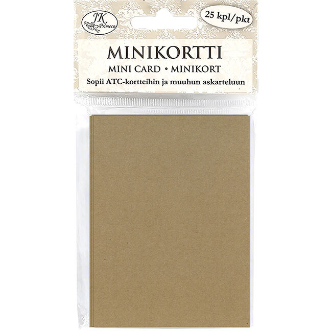 Minikortit askarteluun. Pakkaus sisältää 25 kappaletta minikortteja, jotka sopivat ATC eli keräilykortteihin ja muuhun askarteluun.