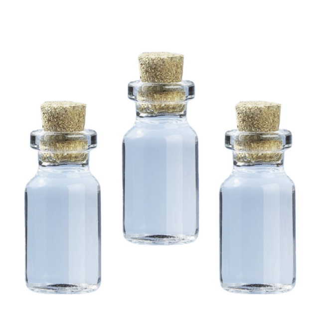 Ihastuttavat pienet lasipullot korkilla. Koko 1 x 3 cm. 8 kpl/pkt.