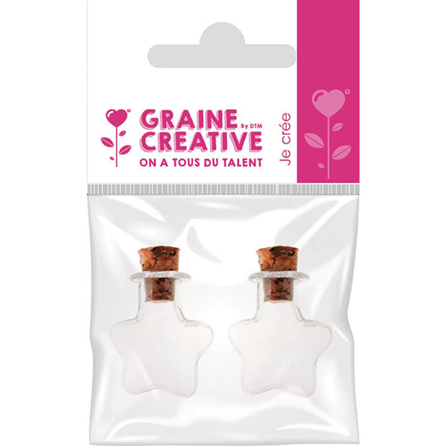 Tähdenmuotoiset lasipullot korkkitulpilla, 2 kpl.