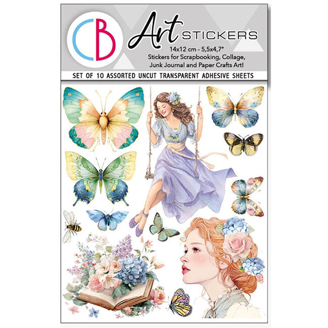 Ciao Bella Mixed Media -tarrasetti. 10 erilaista leikkaamatonta itsekiinnittyvää arkkia. Läpinäkyvä.