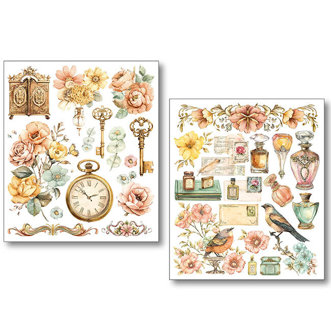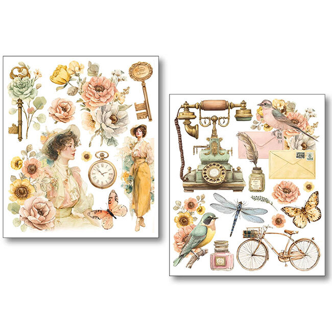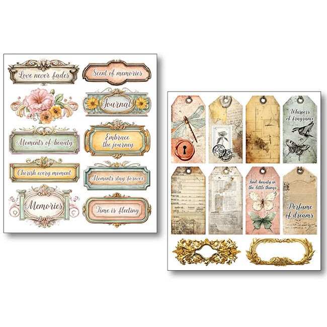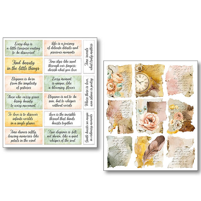 Ciao Bella Mixed Media -tarrasetti. 10 erilaista leikkaamatonta itsekiinnittyvää arkkia. Läpinäkyvä.