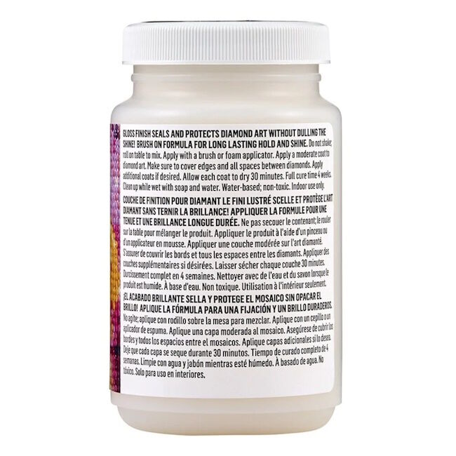 Mod Podge Diamond Top Coat kuivuu nopeasti ja kuivuu kirkkaaksi jättäen sileän, kiiltävän pinnan. Säilytä timanttimaalausprojektisi kauneus ja paljon muuta tällä monikäyttöisellä decoupage-lakalla. Tämä all-in-one-liima, tiiviste ja lakka on loistava tapa varmistaa, että kova aherruksesi pysyy koossa esillepanoa varten. Herätä luovuutesi eloon Mod Podge Diamond Top Coatin rajattomilla mahdollisuuksilla.