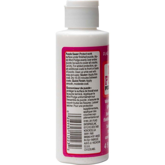 Mod Podge Puzzle Saver, jolla voit säilyttää palapelisi pysyvästi. Palapelien liimaamisen lisäksi tämä tuote sopii myös decoupage-projekteihin, joille haluat antaa kiiltävän viimeistelyn.