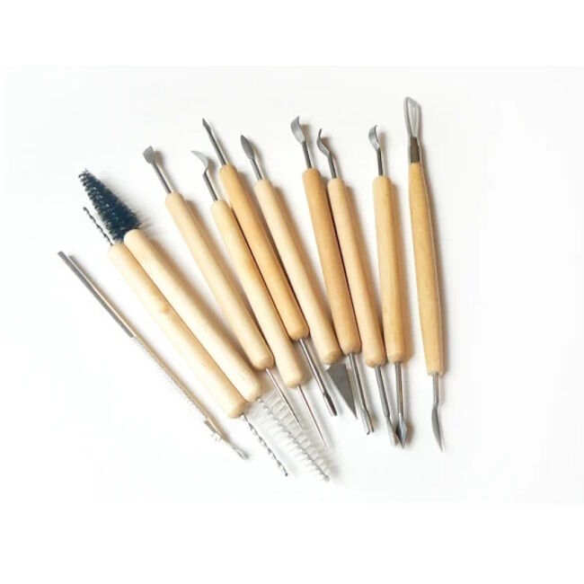 11 kaksipäisen mallinnustyökalun sarja. Puinen kahva.