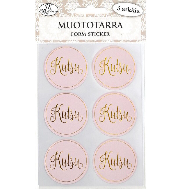 Muototarra askarteluun ja koristeluun. Tarroissa kultainen foliopainatus.