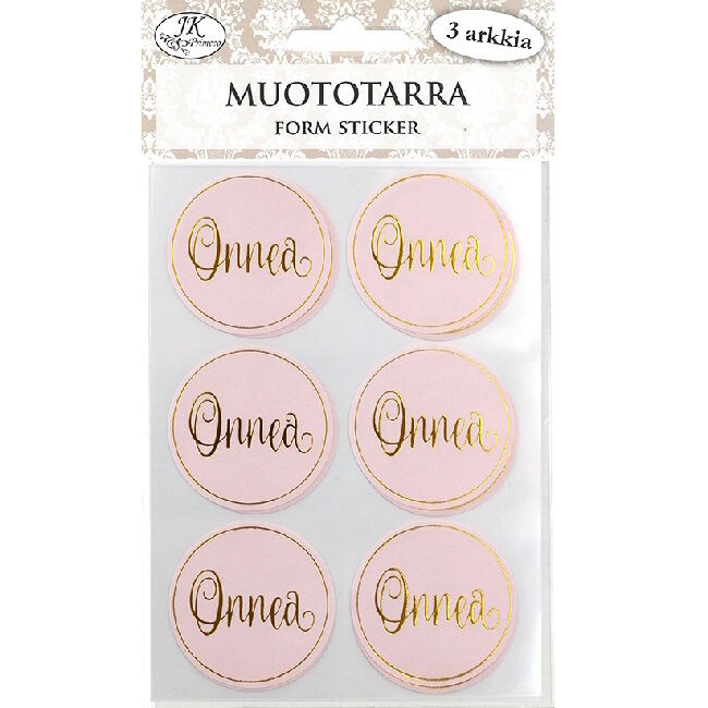 Pakkauksessa 3 arkkia, 6 tarraa/arkki. Yhden tarran halkaisija n. 4cm.