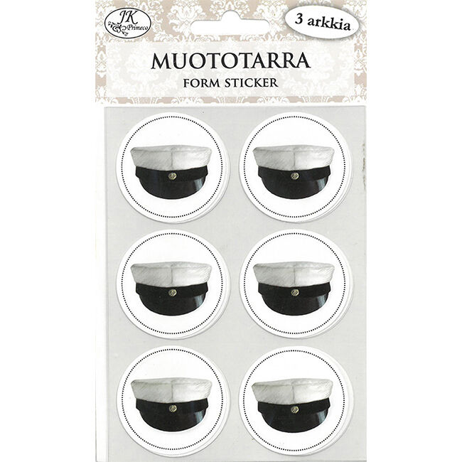 Muototarrat askarteluun ja koristeluun. Pakkaus sisältää kolme arkkia eli yhteensä 18 kappaletta paperisia muototarroja.