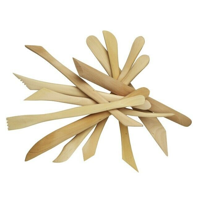 Muotoilutyökalusetti 10 kpl, savelle. Puiset muotoilutikut, pituus n. 20 cm. Kuvan mukaiset mallit.