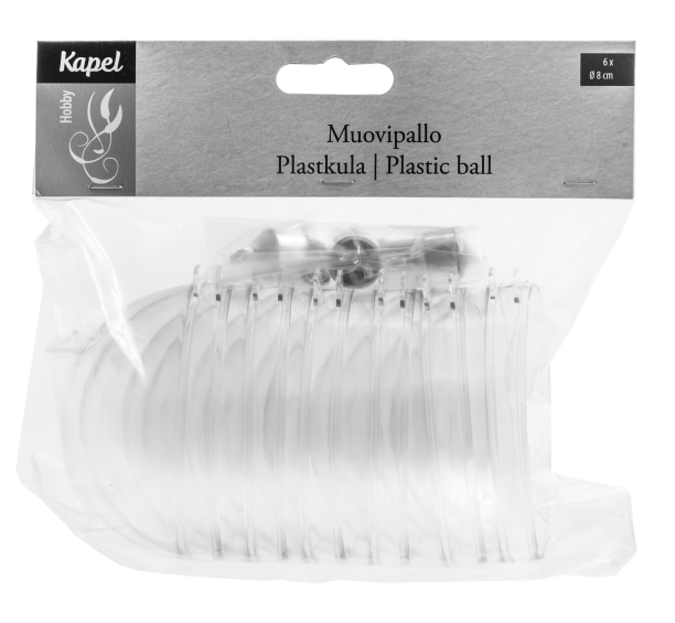 8cm. Kirkas muovi, sis.ripustimet.