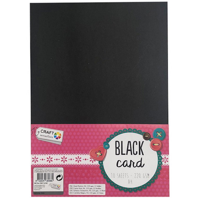 Mustaa askartelukartonkia. 220 gsm. 10 kpl/pkt.