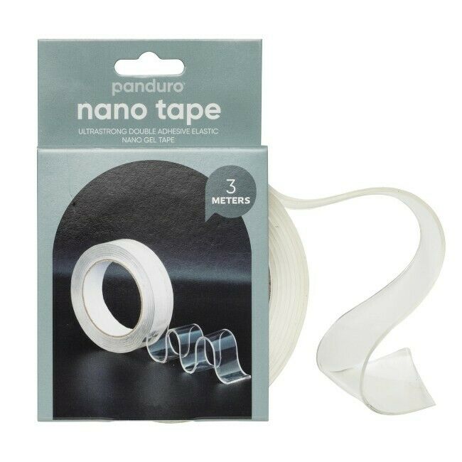 Nano-teippi on läpinäkyvä, paksu ja kaksipuolinen vahva nanoteippi, jonka avulla on helppo kiinnittää/teipata esineitä seinille, järjestää johtoja pöytätason alle tai pysäyttää mattoja, jotka haluavat liukua ympäriinsä. Rullassa on 3 metriä teippiä, jonka leveys on 3 cm. Nanoteipillä on monia luovia ja käytännöllisiä käyttötapoja, ja siitä tulee yleensä välttämätön, kun kokeilet sitä! Tarkkaa kantokykyä tai vastaavaa ei kuitenkaan voida määrittää, se riippuu täysin siitä, mitä haluat kiinnittää ja mistä materiaalista se on tehty. Nyrkkisääntönä on kuitenkin, että sitä ei saa käyttää maalatulle seinälle, tapetille tai kankaalle, koska teipin lujuus todennköisesti repii pinnan, jos/kun haluat poistaa/siirtää sitä.