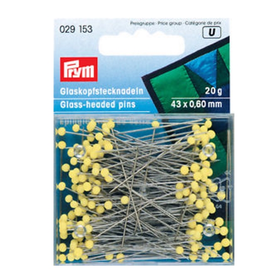 Lasipäinen nuppineula, keltainen. 43mm, 20g.
