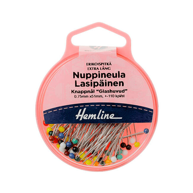 Lasipäinen nuppineula, noin 110kpl. Koko: 0,65mm x 34mm.