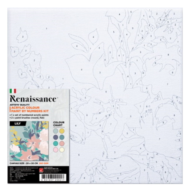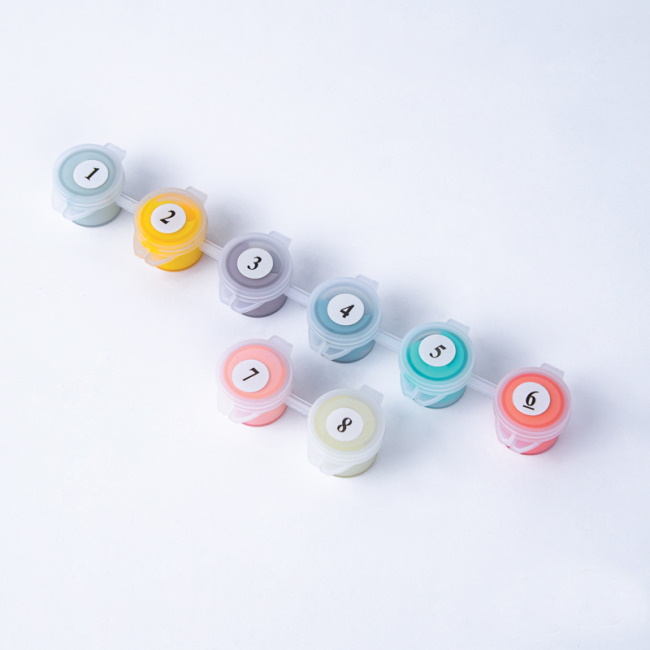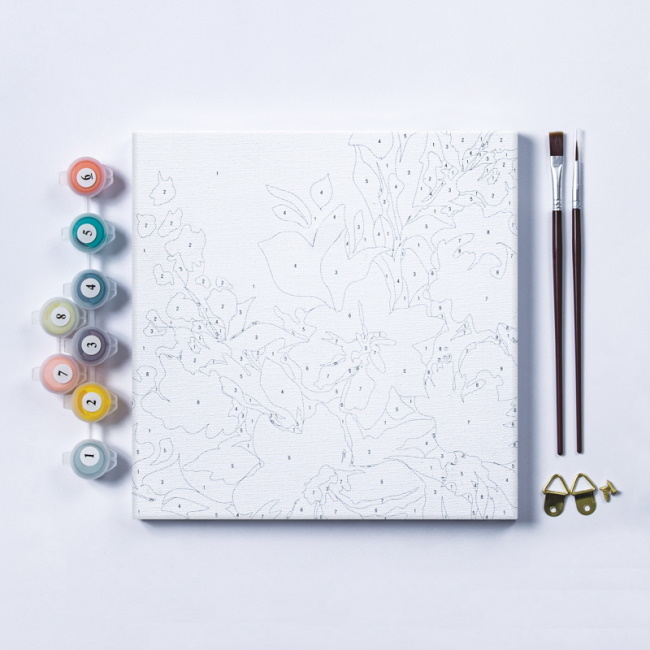 Aseta kaikki materiaalit esille: Maaliruukkujen numerot vastaavat kankaan numeroita.