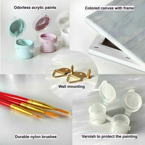 Luo oma mestariteoksesi, vaikka et olisi koskaan ennen maalannut. Jokainen numeroiden mukaan maalattava setti sisältää valmiiksi venytetyn kankaan puukehyksissä, joissa on ääriviivat alueilla ja numeroilla – jokainen numero vastaa akryylimaalin väriä. Seuraa vain ohjetta ja katso, kuinka numeroiden mukaan maalattava kanvaasi herää eloon.