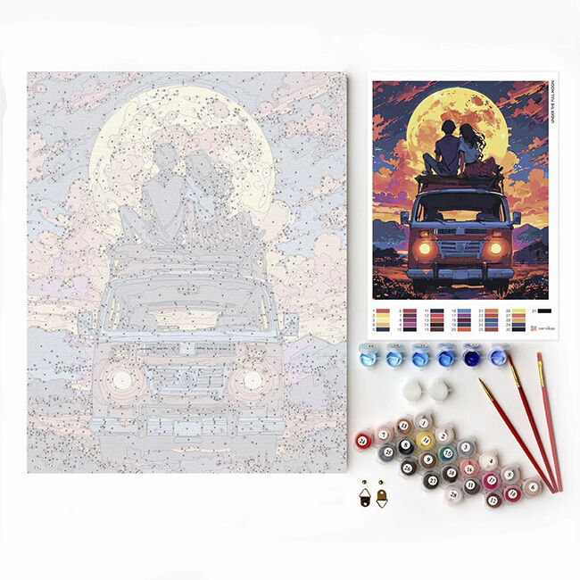 Luo oma mestariteoksesi, vaikka et olisi koskaan ennen maalannut. Jokainen numeroiden mukaan maalattava setti sisältää valmiiksi venytetyn kankaan puukehyksissä, joissa on ääriviivat alueilla ja numeroilla – jokainen numero vastaa akryylimaalin väriä. Seuraa vain ohjetta ja katso, kuinka numeroiden mukaan maalattava kanvaasi herää eloon.