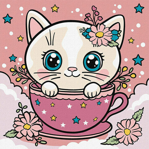 - Valmiiksi pingoitettu kanvaasikangas. Kankaalla kuvan ääriviivakaavio numeroineen. Koko 25 x 25 cm.