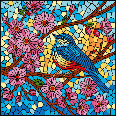 Painting by numbers Stained glass window: A tit