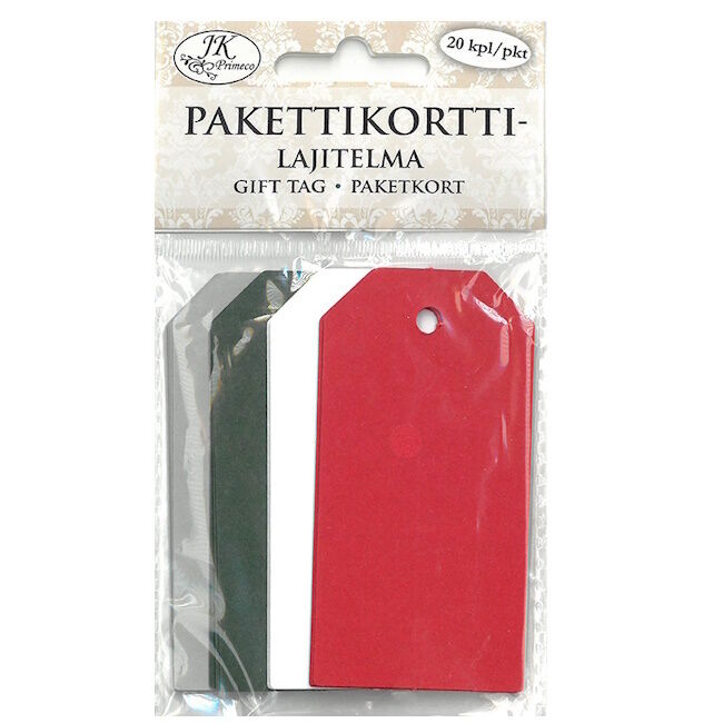 Pakkauksessa 20 pakettikorttia/4 eri väriä.