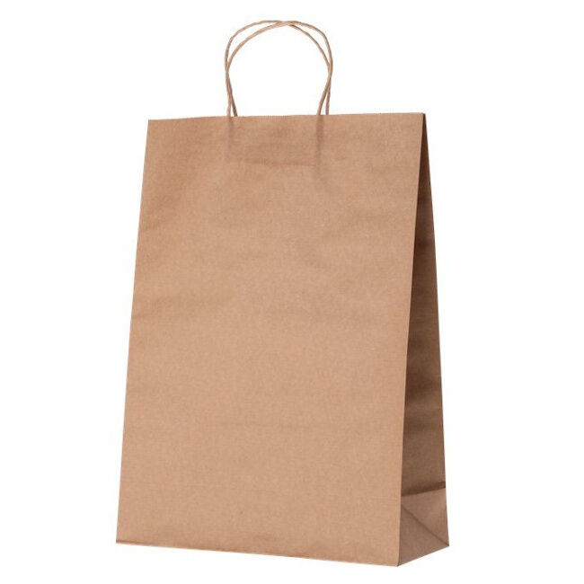 Ruskea 120 gsm paperikassi paperinarukahvoilla. Koko 30 x 12 x 42 cm.