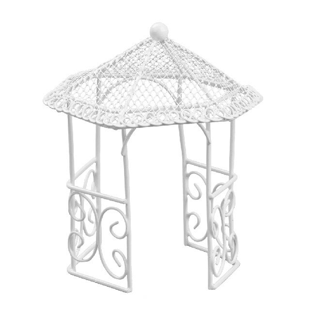 Koristeellinen metallipaviljonki miniatyyripuutarhaan. Korkeus 14 cm.