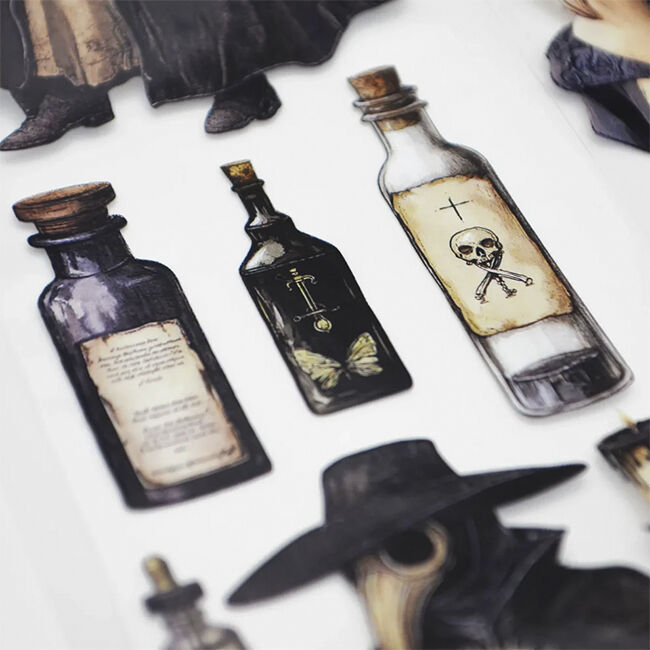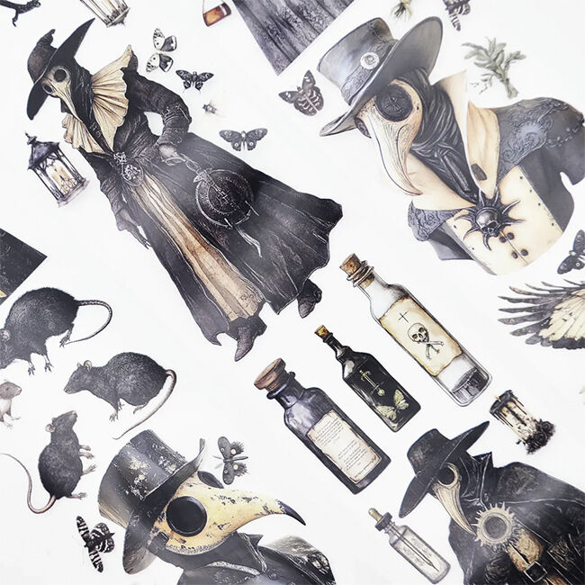 Astu "Ruttotohtorin" kummittelevaan maailmaan. Tunnelmallisen beigen ja mustan sävyissä tehty kokoelma esittelee upeita kuvia ikonisesta ruttotohtorista ja hänen naamiostaan, jokainen kuva herättää henkiin kauan sitten menneen ajan aavemaisen tunnelman, mikä sopii täydellisesti lisäämään historiallista ja salaperäistä säväystä luovaan työhösi. Anna "Ruttotohtorin" inspiroida projektejasi kummittelevan kauniilla kuosillaan.