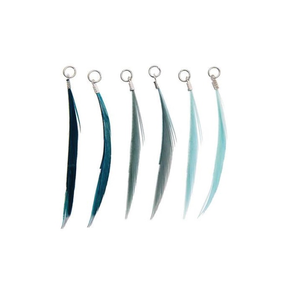 Nämä höyhenet ovat täydellisiä korujen valmistukseen ja koristeluun. Niissä on 5 mm: n välirengas, joka varmistaa helpon ja nopean asennuksen monen tyyppisiin rannekkeisiin, ketjuihin ja korvakoruihin.