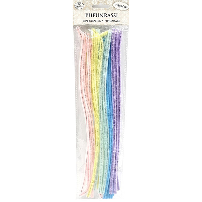 Piipunrassi askarteluun ja koristeluun. Pakkaus sisältää 25 kappaletta piipunrasseja viidessä eri värissä.