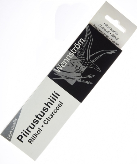 Pyöreä piirustushiili. Halkaisija 3-5 mm. Valmistettu Suomessa.