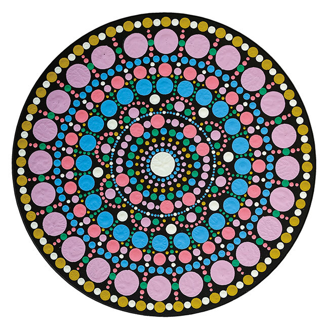 Pistemaalaus kehittää luovuutta ja keskittymiskykyä. Mandalan harmoninen symmetria ja käden työn hienostuneisuus edistävät rentoutumista. Sapluuna on uudelleenkäytettävä ja sitä voidaan käyttää muihin puisiin alustoihin.