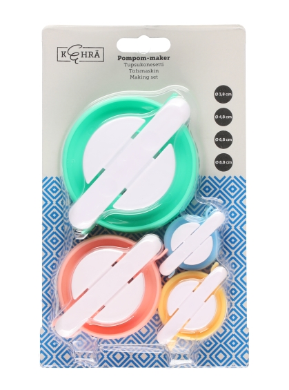 Tee erilaisista langoista tupsut pipoihin ja muihin käsitöihin. Neljä eri kokoa paketissa.