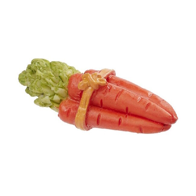 Miniatyyri porkkananippu, koko noin 1,5 x 1,5 x 3 cm.