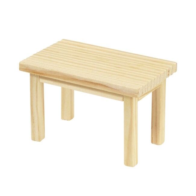Puinen miniatyyripöytä. Koko 8 x 5 x 5 cm.