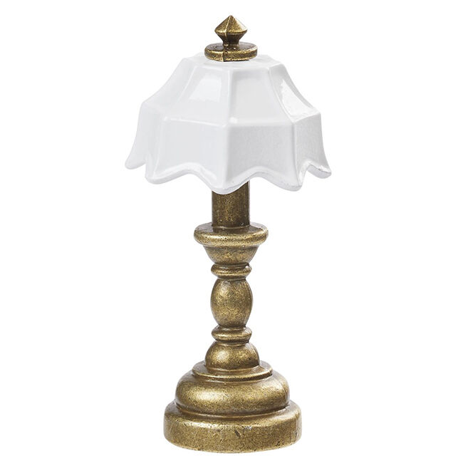 Miniatyyri pöytälamppu (ei valoa), koko 2 x 4,3 cm.