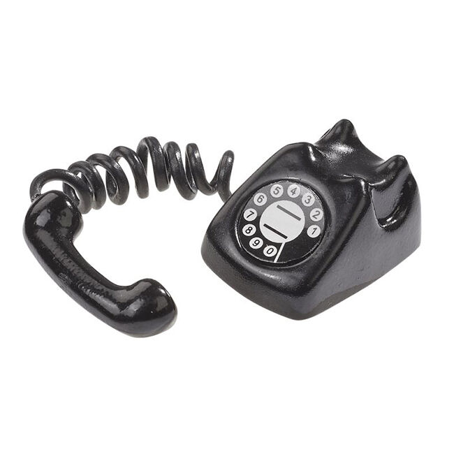 Miniatyyri pöytäpuhelin. Koko 1,7 cm.