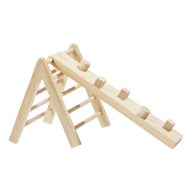 Nämä koristeelliset puiset tikkaat minikokoisella kiipeilytelineellä näyttävät realistiselta ja sopivat mainiosti minipuutarhojen tai nukkekotien koristeeksi.