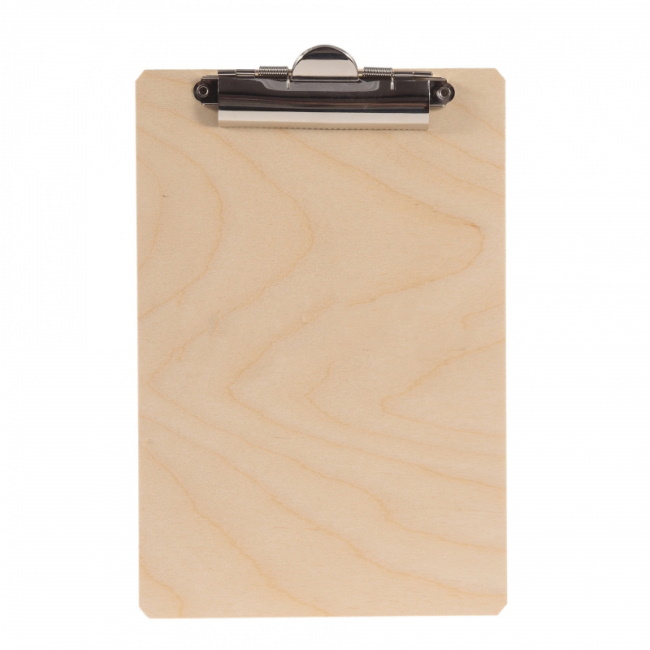 Puinen kirjoitusalusta tukevalla klipsillä.