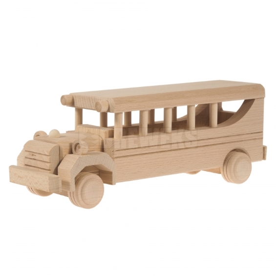 Puinen koulubussi. Koko 31 x 25 x 11 cm.
