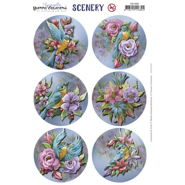 | Push-Out kuvat Scenery - Aquarella - Birds and Flowers Round | ||||