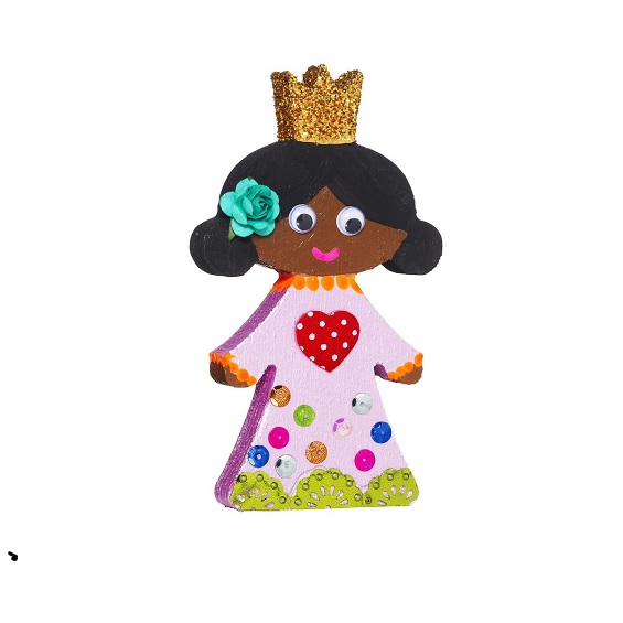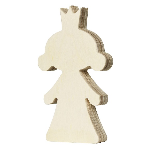 Figuuri maalaamattomasta puusta. Maalaa tai vaikka päällystä helmimassalla! Paksuus 17 mm. Prinsessa, korkeus 12 cm.