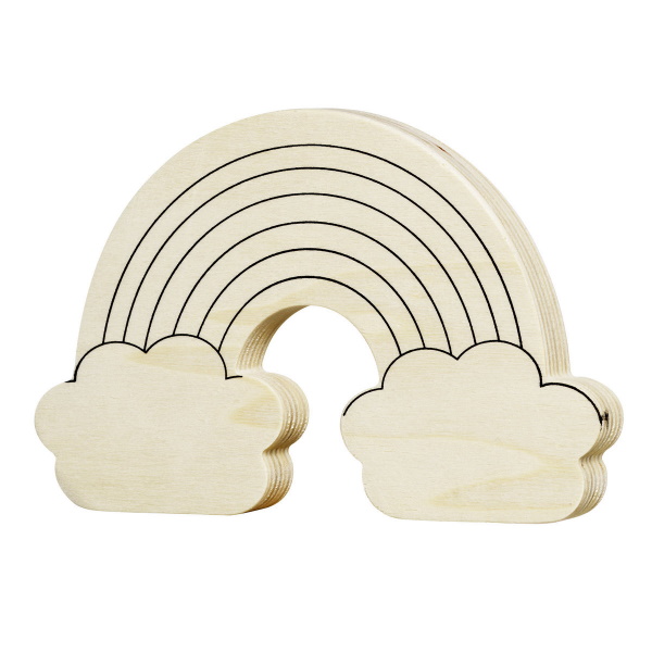 Figuuri maalaamattomasta puusta. Maalaa tai vaikka päällystä helmimassalla! Paksuus 17 mm. Sateenkaari, korkeus 10,5 cm.