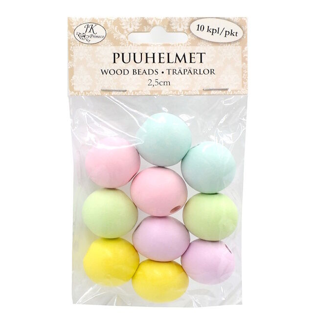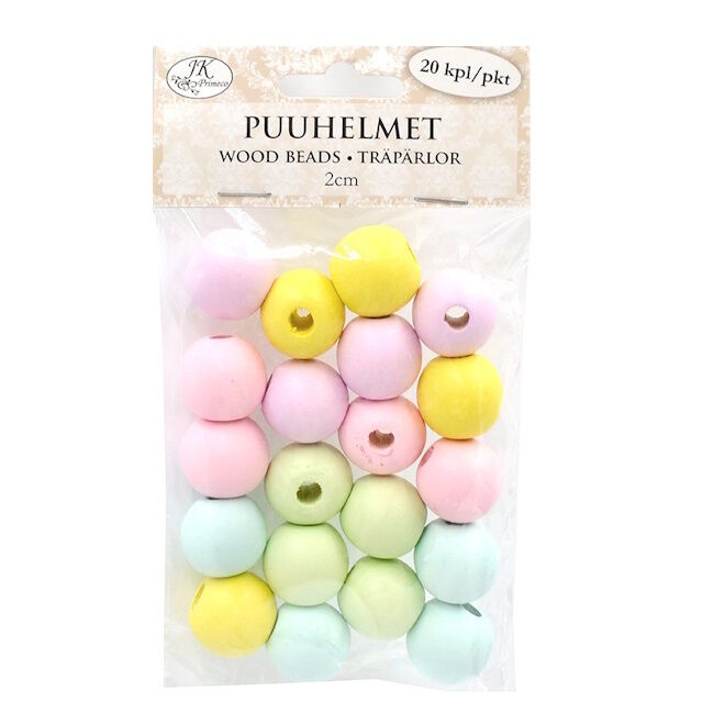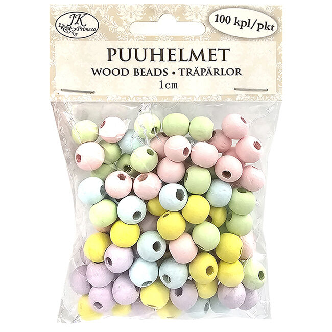 Puuhelmet pastellilajitelma, 4 eri kokoa
